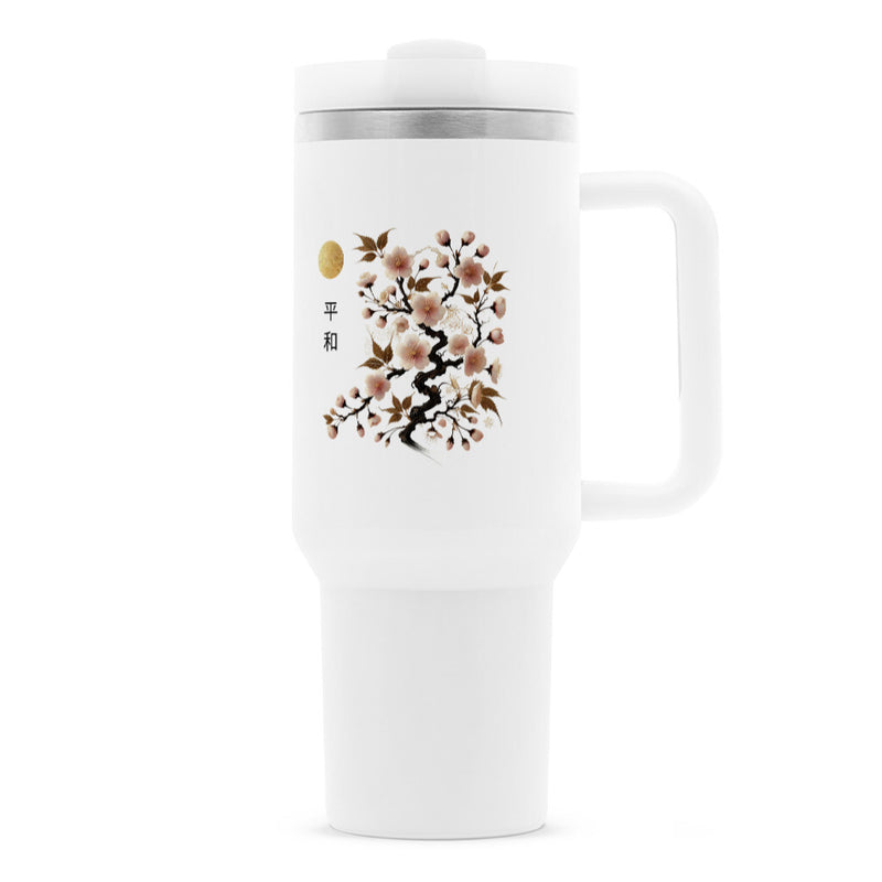 Mit diesem Reisebecher im zarten Kirschblütendesign startest du deinen Tag entspannt und stilvoll. Der robuste Becher mit Henkel und hochwertigem Druck hält deine Getränke warm und begleitet dich sicher durch den Alltag – ob im Auto, Büro oder auf Reisen.